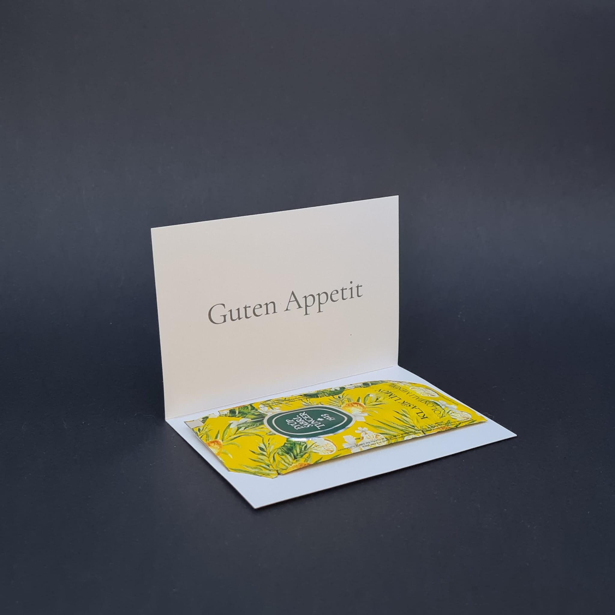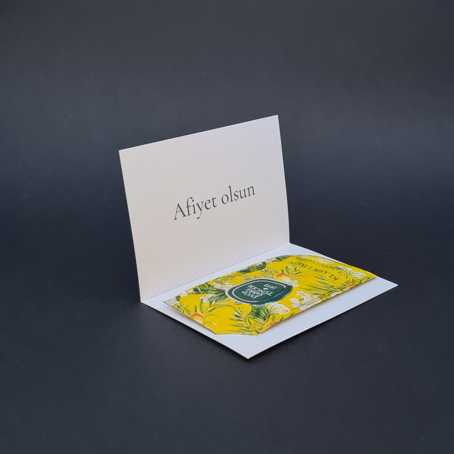 Jede Klappkarte enthält ein einzeln verpacktes Kolonya-Erfrischungstuch, das für saubere, erfrischte Hände sorgt – ein klassisches Zeichen von Respekt und Wertschätzung.